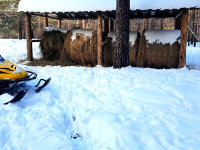 Сотрудники Фонда "САПСАН" создают подкормочные площадки, на которые приходят как крупные копытные звери, так и птицы, чтобы полакомиться зернобобовой смесью, заготовленными сеном, скрученным в тюки, а также вениками с высушенной листвой. Специально для животных оборудуют солонцы.